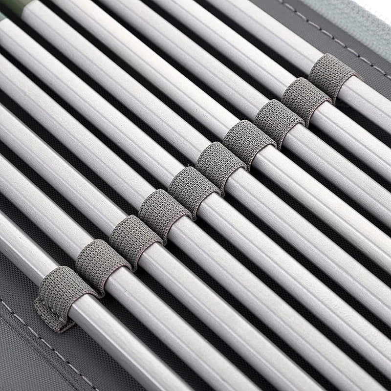 - Cada lápis ou caneta possui um slot individual, mantendo tudo no lugar.